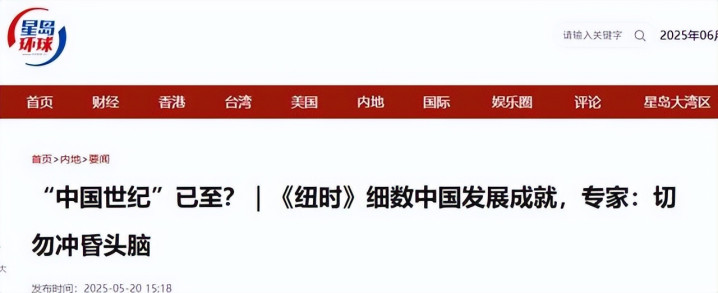 2025年5月,中美日内瓦经济贸易会谈刚结束,《纽约时报》就发了一篇文章,说中国未来会主导世界,美国会变得不重要。文章作者说,历史学家回头看,可能会说特朗普第二任期刚开始的几个月,是中国把美国甩在后面的分界线。