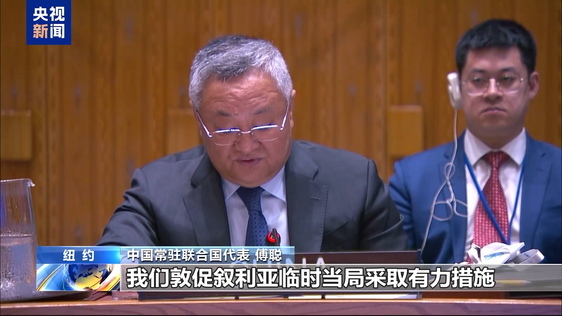 中国常驻联合国代表傅聪表示,中方支持叙利亚推进包容性政治过渡进程。叙利亚各方应共同维护局势稳定,避免引发新的冲突。叙利亚境内的恐怖活动也日趋活跃,令人担忧。